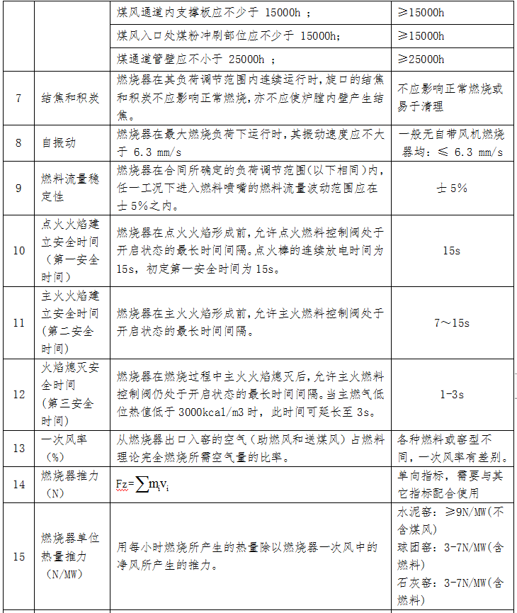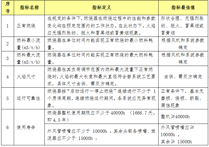 二、燃烧器主要技术指标或技术参数