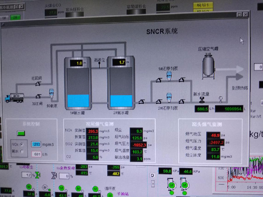 图8 更换燃烧器后氨水使用情况SNCR操作画面以及NOx排放情况