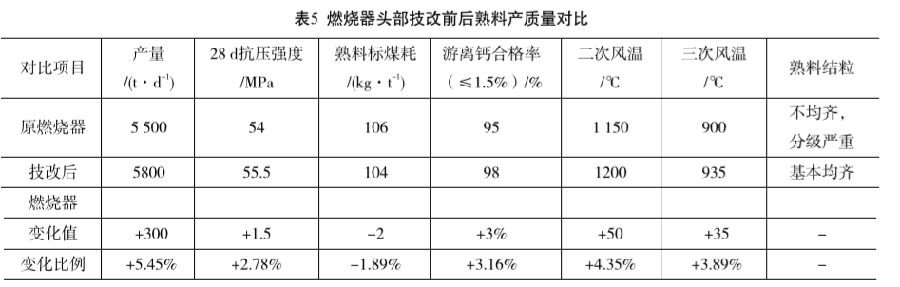 经中和机电进行头部技改后的燃烧器,已投入使用3个月。生产实践证明,本次技改基于充分利用原有设备,没有增加额外投次,达到了提高产量和熟料强度、降低热耗、解决易结厚窑皮易结圈。
