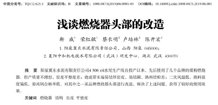 回转窑燃烧器是烧成系统很关键的热工设备。它不仅影响窑系统的热耗及产量,还对熟料质量产生很重要的影响。目前国内外燃烧器的种类繁多,国外生产燃烧器的品牌公司主要为 PillardFIS、KHD等,国内则制造企业众多,良莠不齐。少用一次风量,以减少运行电耗及Ox的排放,满足低热耗高产量的要求。然而,一些燃烧器并不能满足以上要求,给用户带来诸多不便,甚至带来较大的经济损失。阳泉冀东水泥有限责任公司4500tl水泥生产线自投产以来,先后使用了几个品牌的煤粉燃烧器,但使用效果不理想。于是決定选择一台然烧器,对其头部进行改造,以其满足烧成系统更节能、更环保、更高效运行之需。